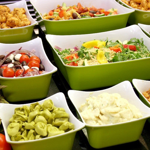 Fleur crocks have a unique design and the vibrant colours add style and zest to delicatessens, salad bars and hotel buffets. Strong melamine construction for commercial food use, with non-slip silicone feet. Use with matching TB4416 Inserts