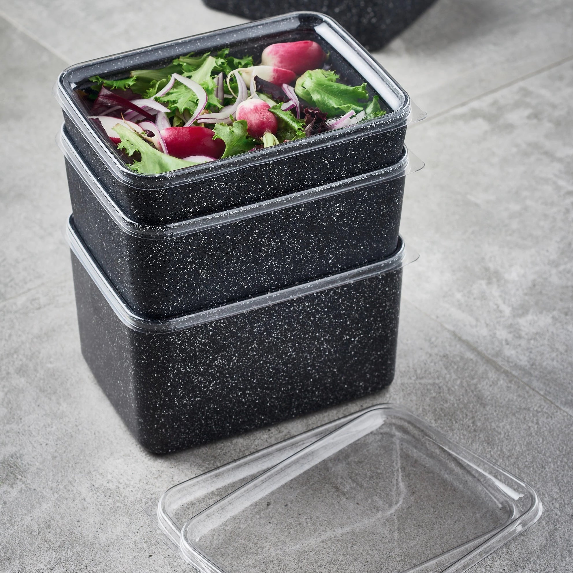 These reusable PET lids add to the versatility of the new Kata Crock range from Dalebrook. Transparent wipe-clean lids seal airtight to reduce requirement for cling wrap. Crocks are still able to stack when lids are fitted, for easy storage. An effective solution for caterers needing to transport food. Now in convenient packs of 25 lids